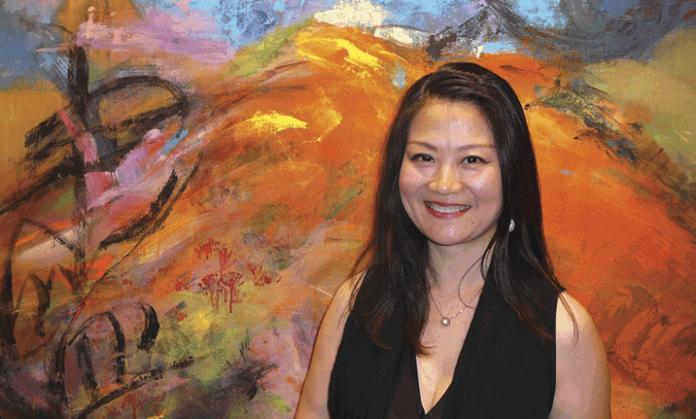 Local business and political leaders were there April 29 as Chairman Earl Wright and wife Nancy debuted the large work in the building’s mezzanine, along with the Shanghai native who spent three months in Greenwood Village creating the wall-length mural.
